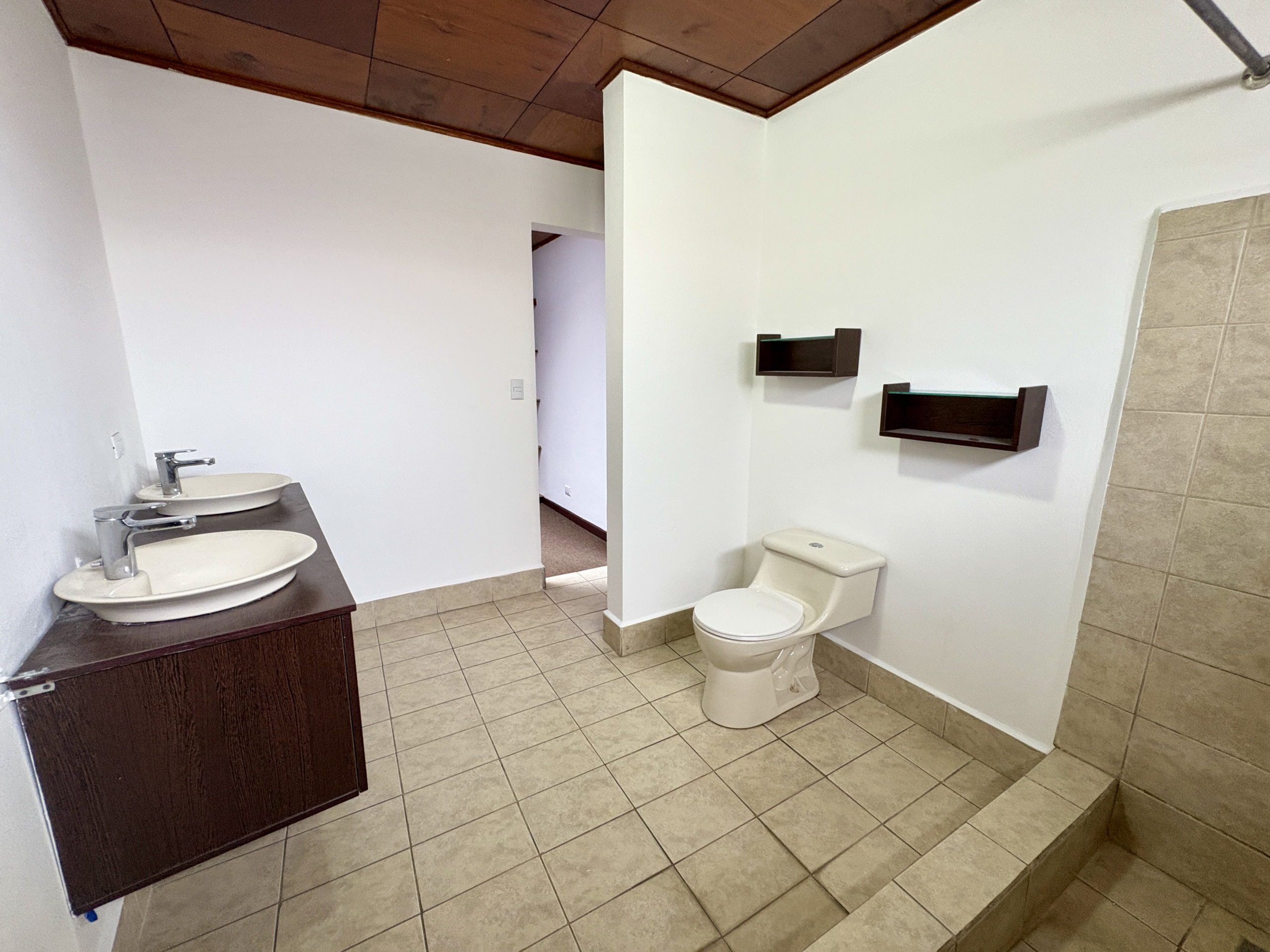 • 2 baños completos (uno en el cuarto principal y otro compartido).